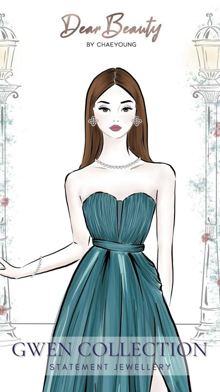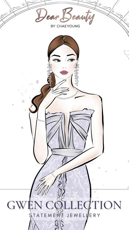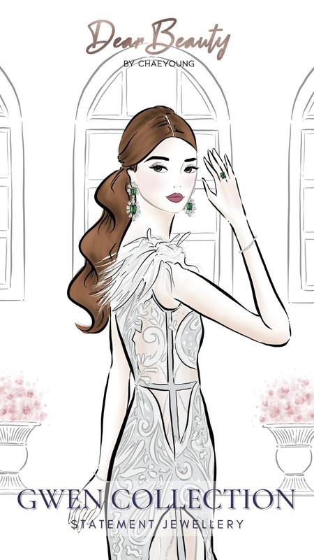 One of my early brand collaborations was with Dear Beauty Jewelry, a brand based in Singapore. I had the pleasure of illustrating for their new Gwen collection series launch.